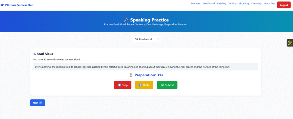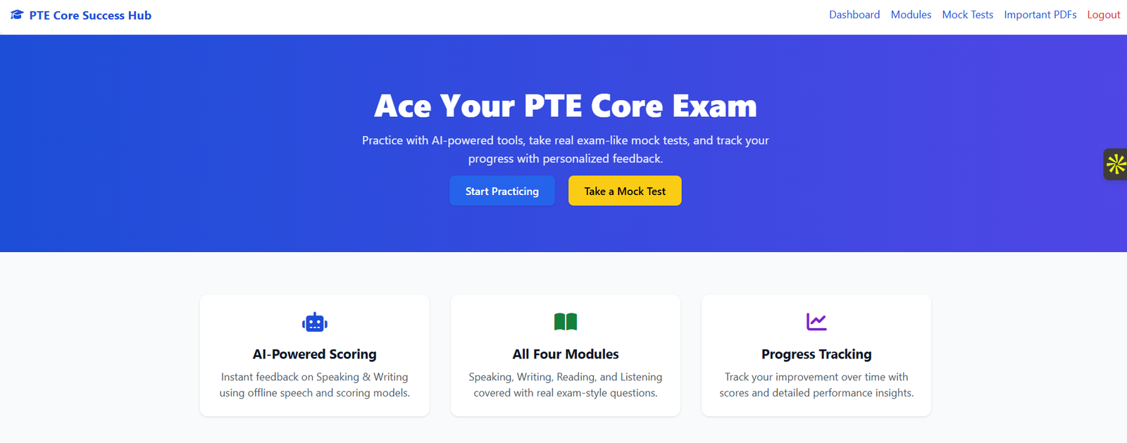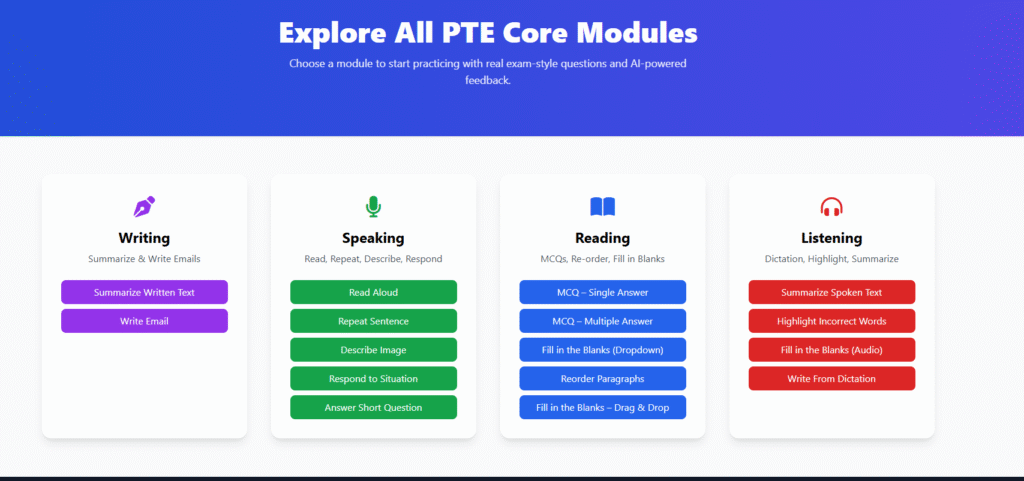 PTE Core Mock Test And Learning WebApp